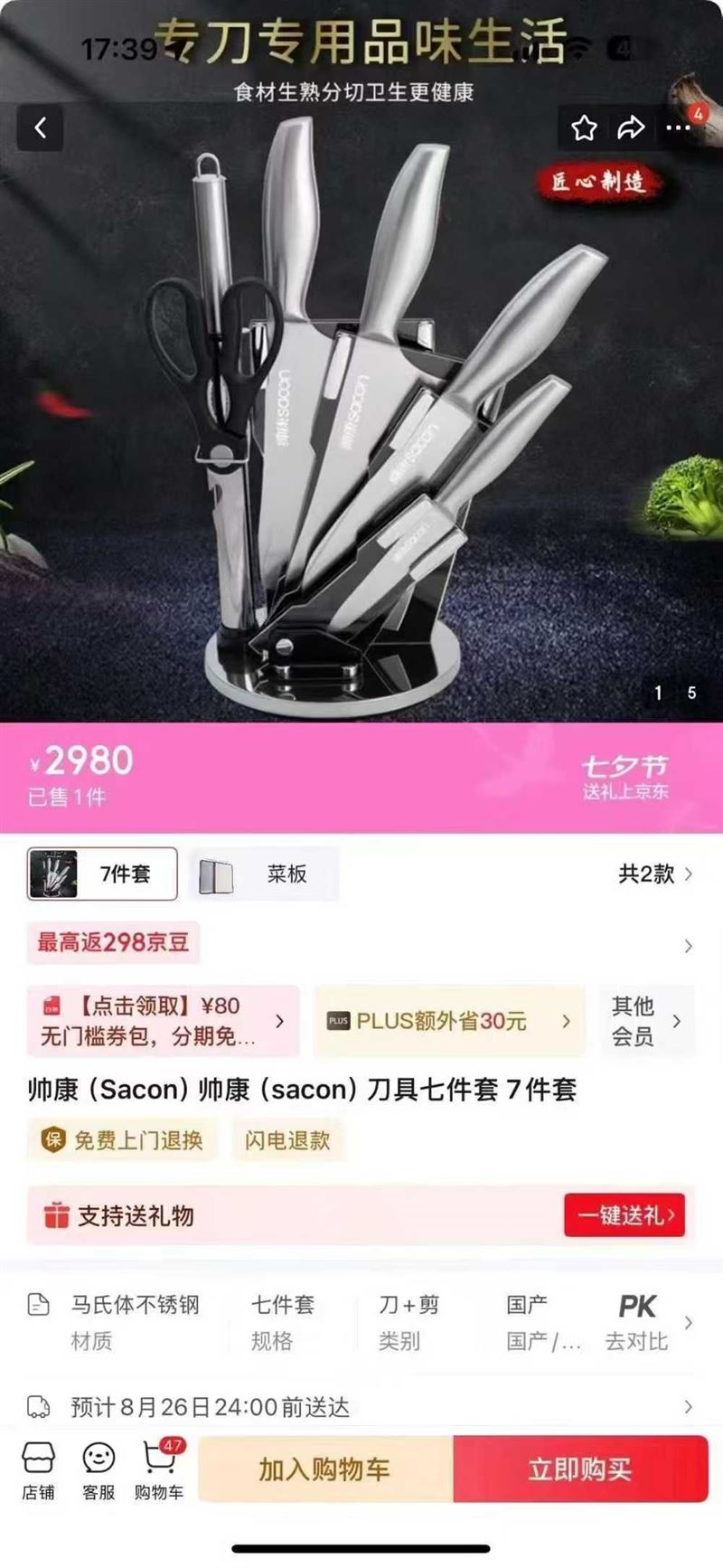 全新未拆封,3Cr13mov不锈钢材质,刀身加厚更耐用。套装包含菜刀、水果刀、剪刀等,适合家庭厨房使用 2000 套 (识别下方二维码联系卖家)