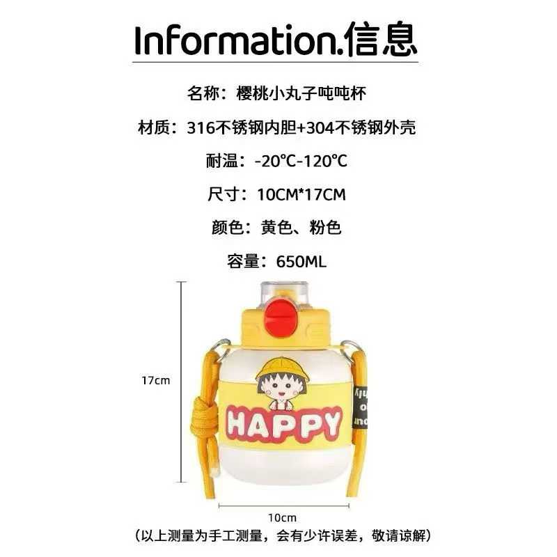 樱桃小丸子吨吨杯,316不锈钢内胆➕304不锈钢外壳,5000个,网红爆款 电话微信同号15515665791