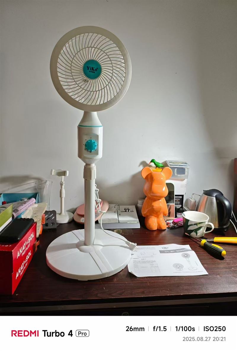 出厂原箱,高度75~90Cm,三档风速,可**,可调节上下仰角,线长1米3,2根扇插…… (识别下方二维码联系卖家)