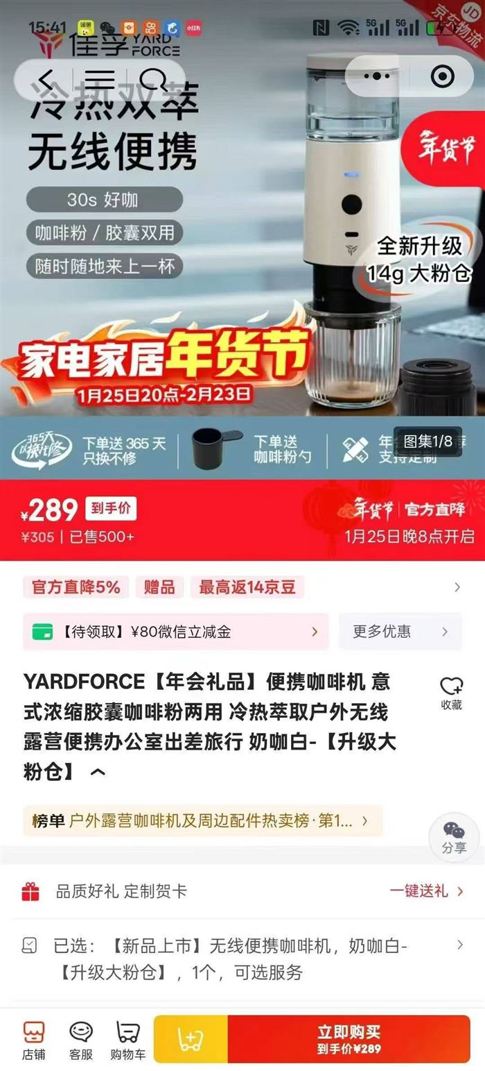 YARDFORCE【年会礼品】便携咖啡机 意式浓缩胶囊咖啡粉两用 冷热萃取户外..