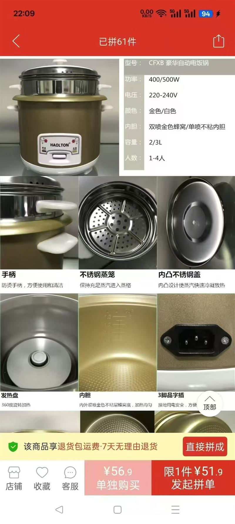 2升电饭锅517台,33元一台