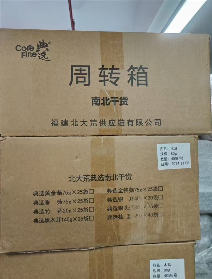 北大荒典选 黑木耳, 数量:400袋,每箱40袋,每袋80克,生产日期24年11月08日 保质期18个,到26年5月07日,