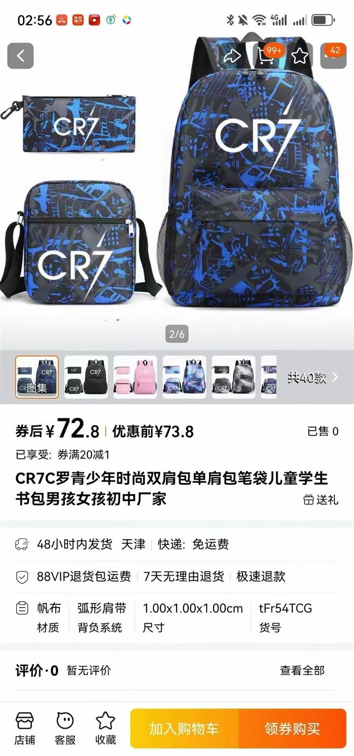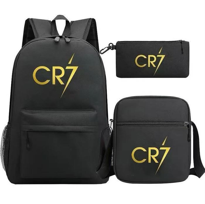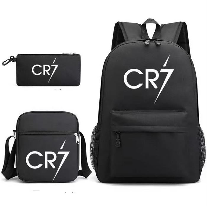 背包三件套,CR7C罗品牌青少年时尚双肩包+单肩背+笔袋三件套,4000个,十几块 (识别下方二维码联系卖家)