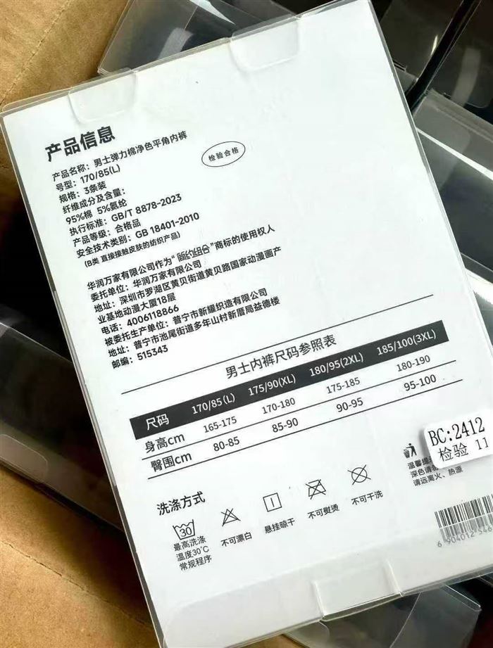 男士平角内裤 华润万家自有品牌内裤5000 盒 一盒 3 条装 25 年生..