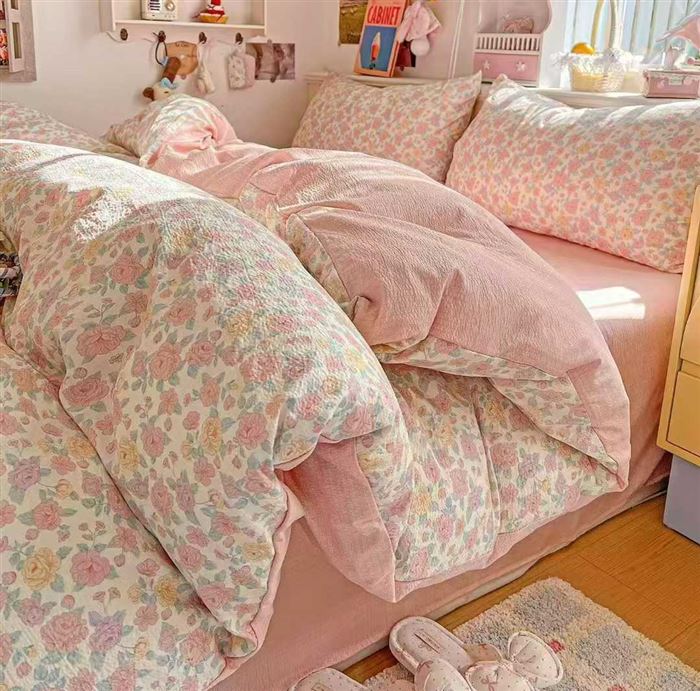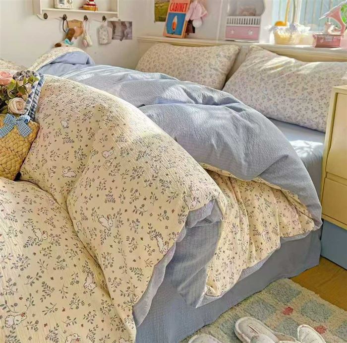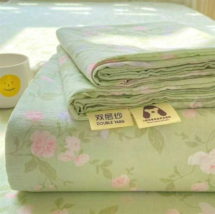 应季爆款木棉云感皱皱双层纱四件套3500套,100克,四件套40多块钱一套! (识别下方二维码联系卖家)