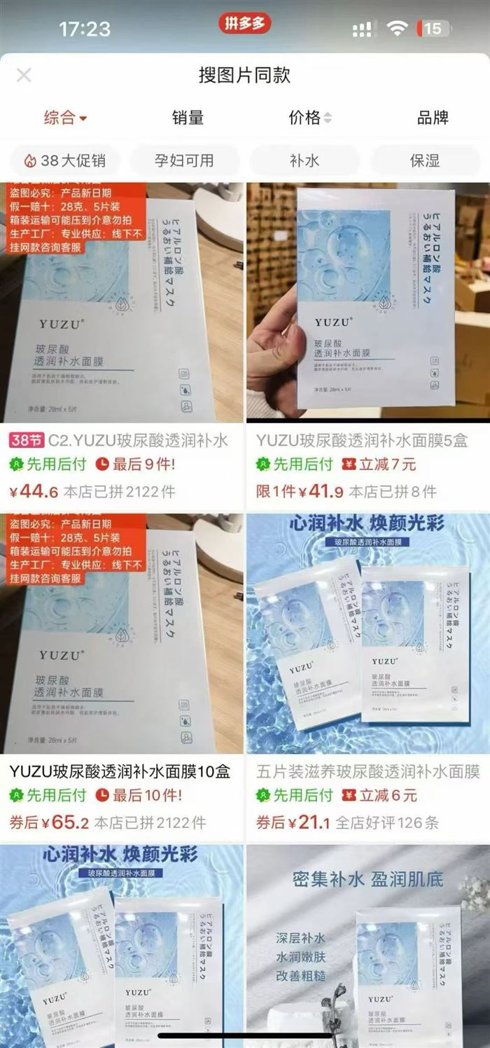 5片装补水面膜,数量8900/效期 2028年10月 价格美丽 拼手速