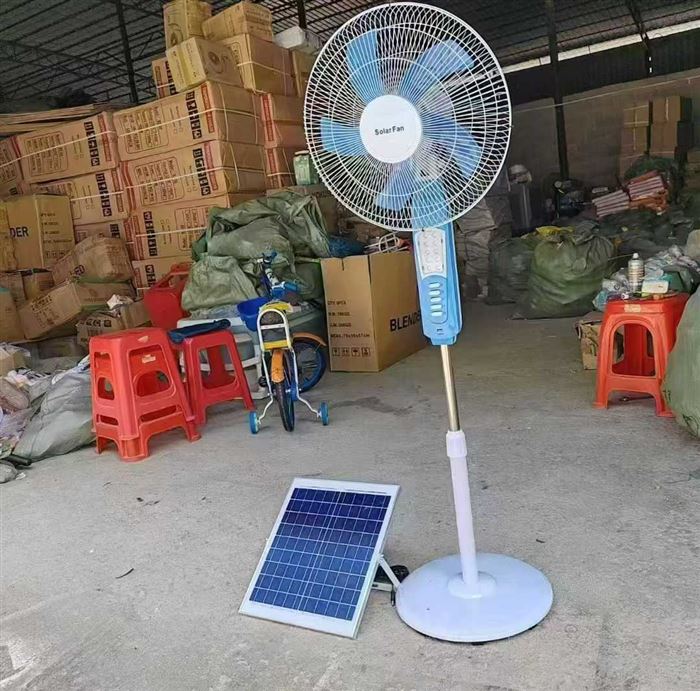 高端太阳能16寸落地扇220台,6节18650电池,蓄电正常,太阳能充电/直插电两用,用料扎实,做工考究,细节到位,节能环保,包装板正 (识别下方二维码联系卖家)