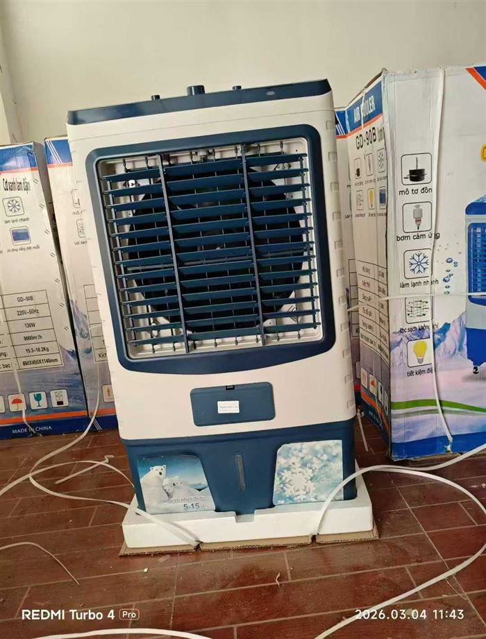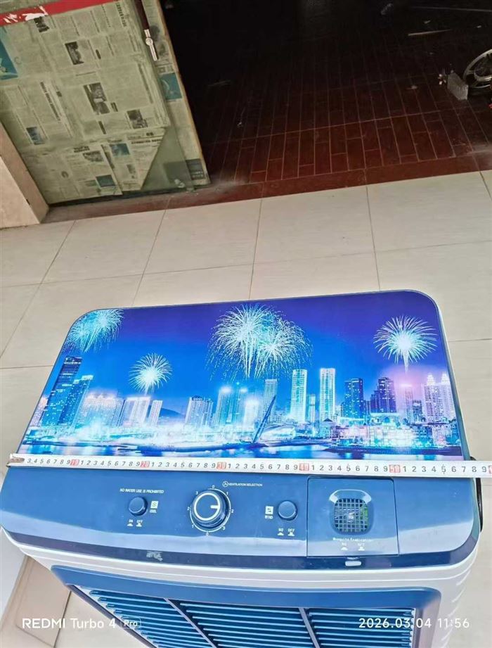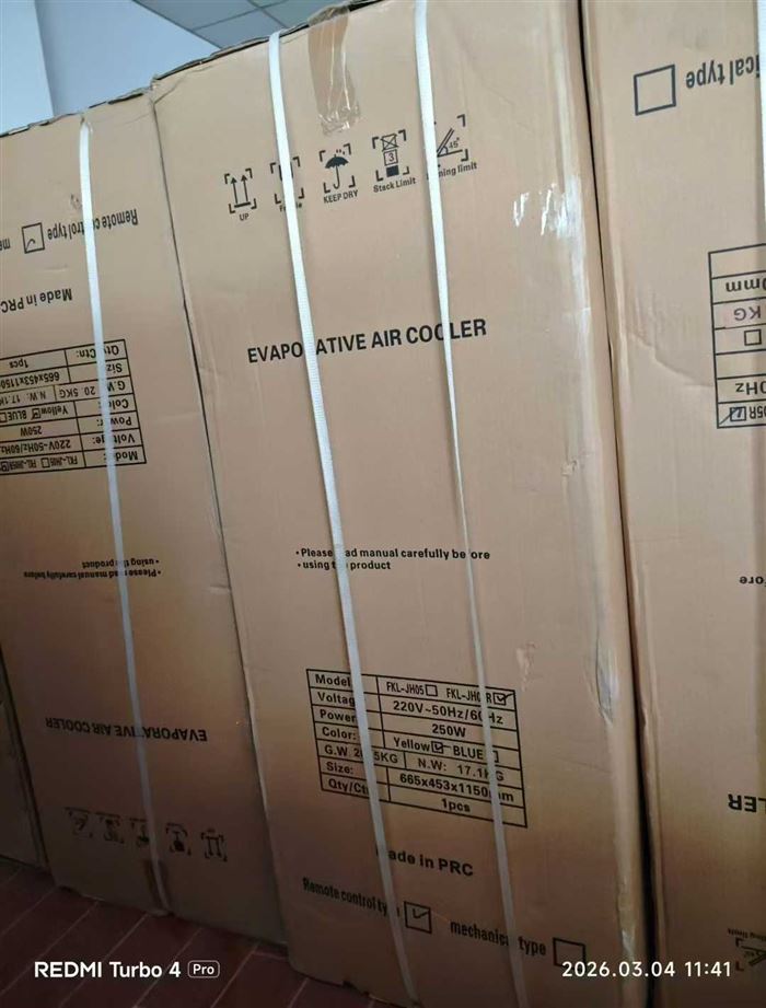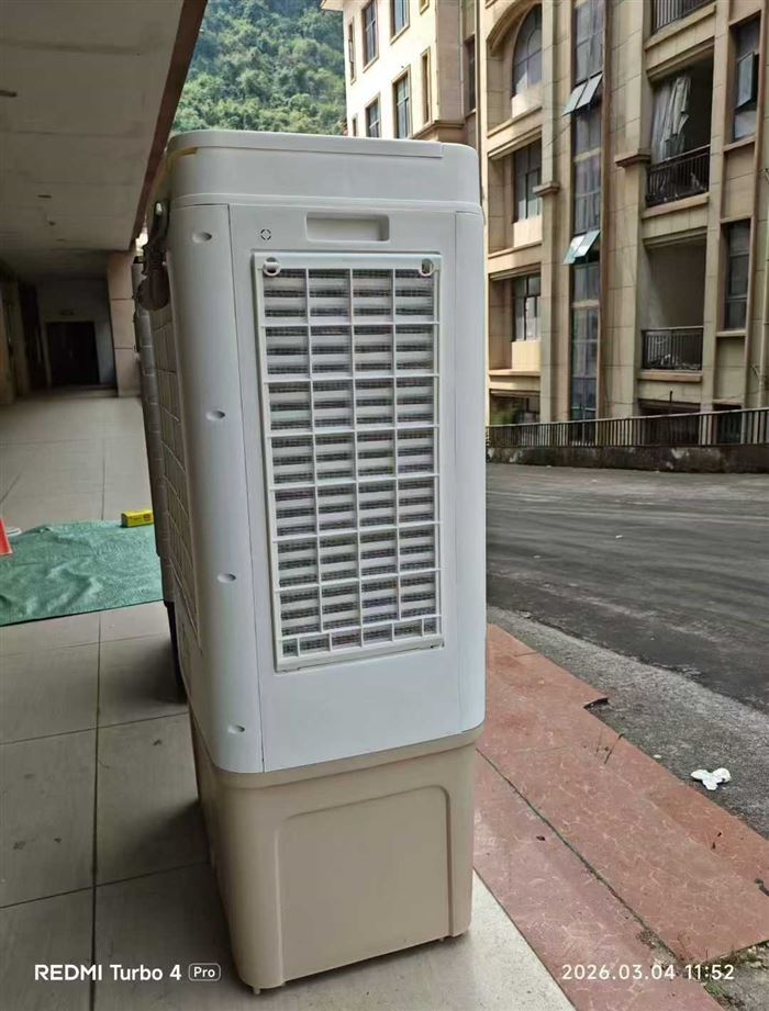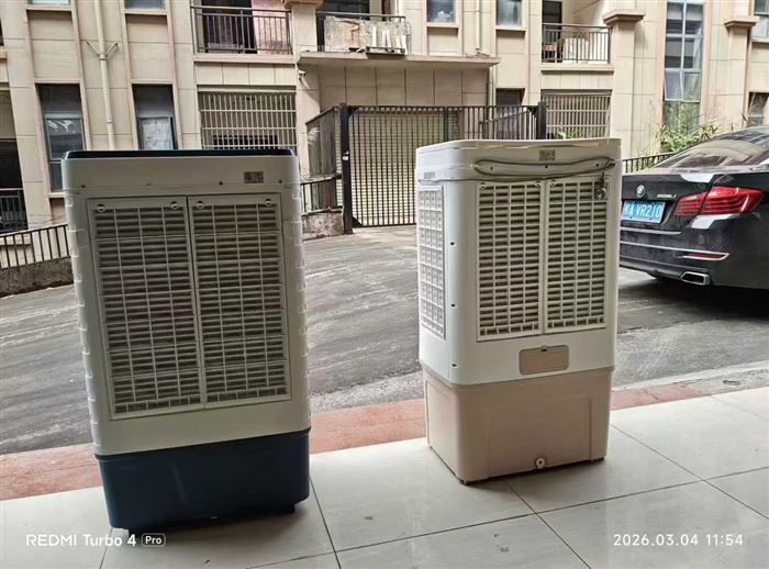 两款式大型水冷风约60台,实物高度约115厘米,宽度约60厘米,厚度约40厘米,按键款约30台,遥控款约25台。