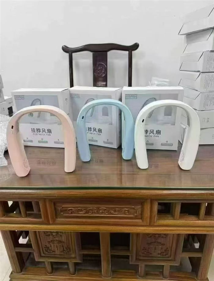 2500套,挂脖风扇,3档风力带双冰敷制冷,内置2000毫安电池,全新整齐,原箱原件