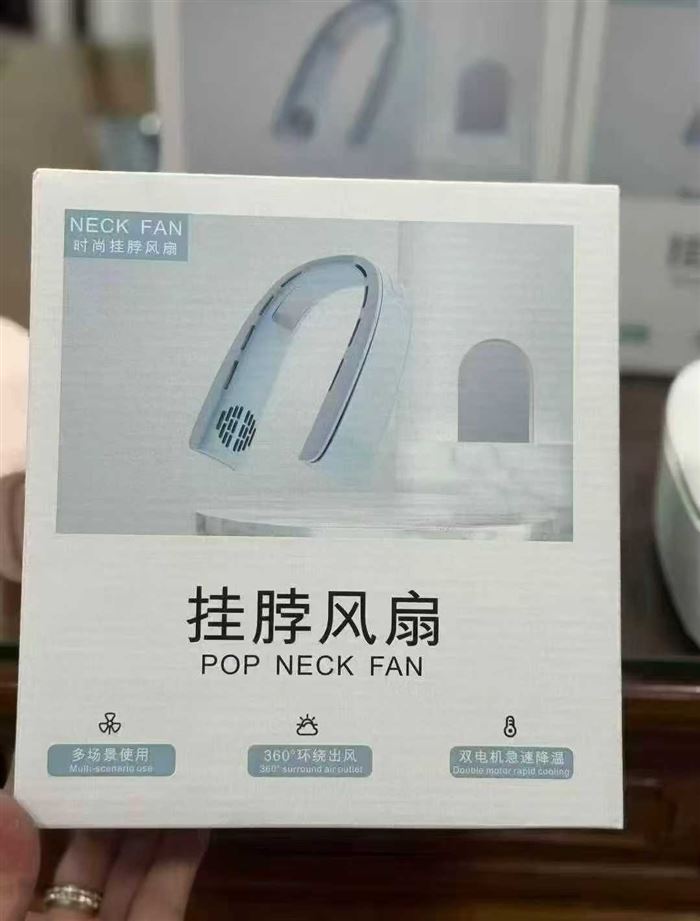 到货2500套,挂脖风扇,3档风力带双冰敷制冷,内置2000毫安电池,全新整齐,原箱原件,有兴趣私聊 (识别下方二维码联系卖家)