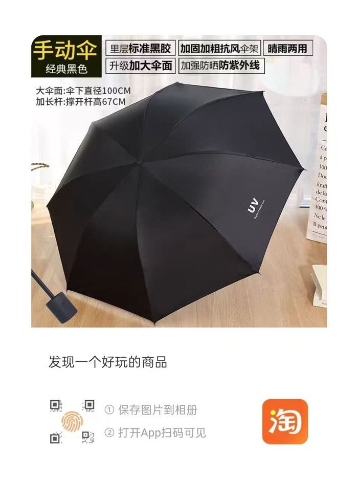 晴雨伞12000把,VU黑胶,清货6.5元一把,全新无瑕疵,板板正正 (识别下方二维码联系卖家)