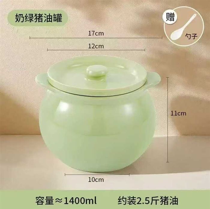 1400毫升约装2.5斤双耳猪油罐家用陶瓷罐大容量耐高温 (识别下方二维码联系卖家)
