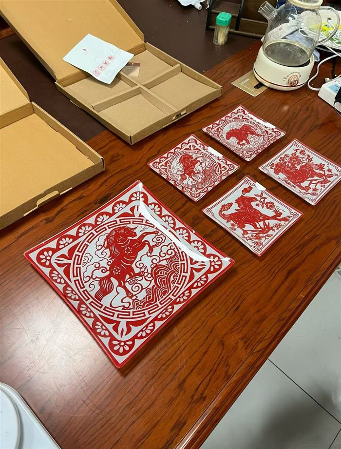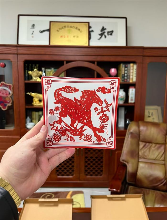 工艺品盘子到货20000多套,非遗剪纸文化马年定制款,质量做工特别好,独立盒包装,糖果盘,糕点盘,当个工艺品摆件也不错,价格便宜,块块钱的事 (识别下方二维码联系卖家)