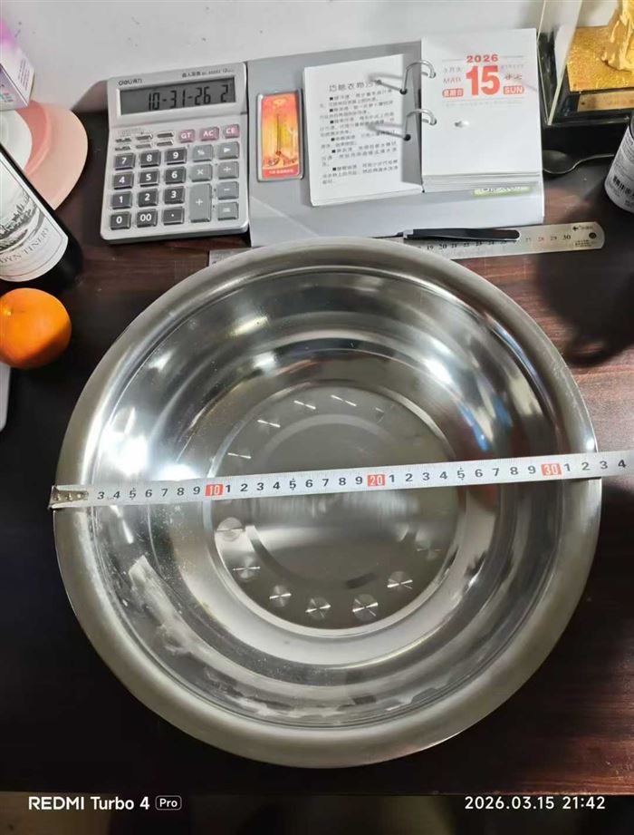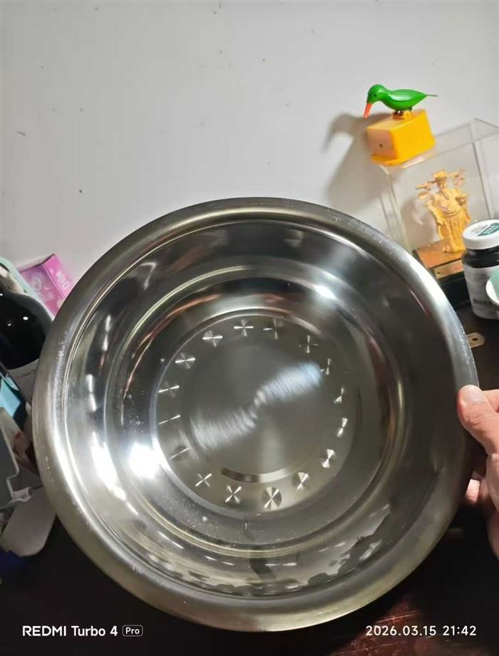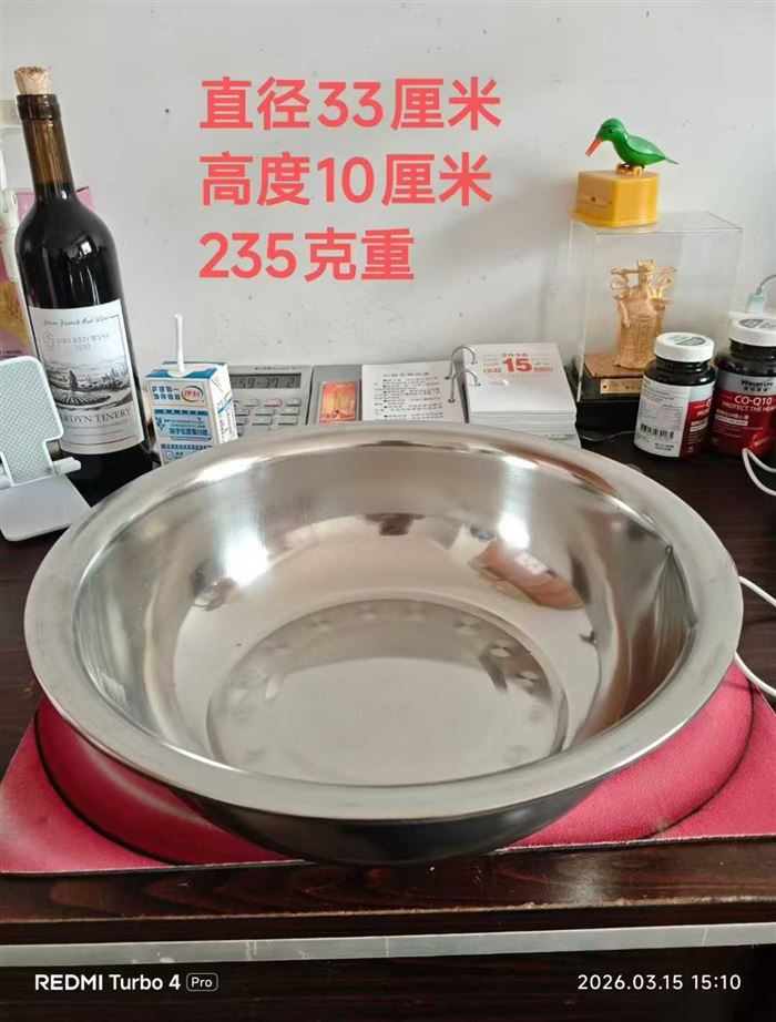 直径33厘米,高度10厘米,克重235g左右,表面光亮,质感一流。2.x元 (识别下方二维码联系卖家)
