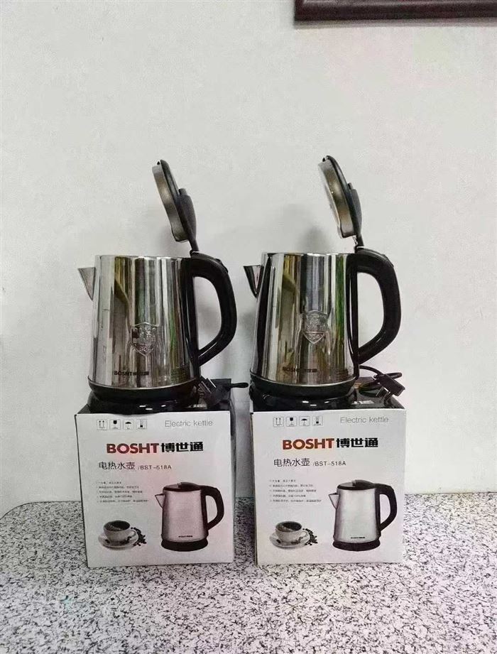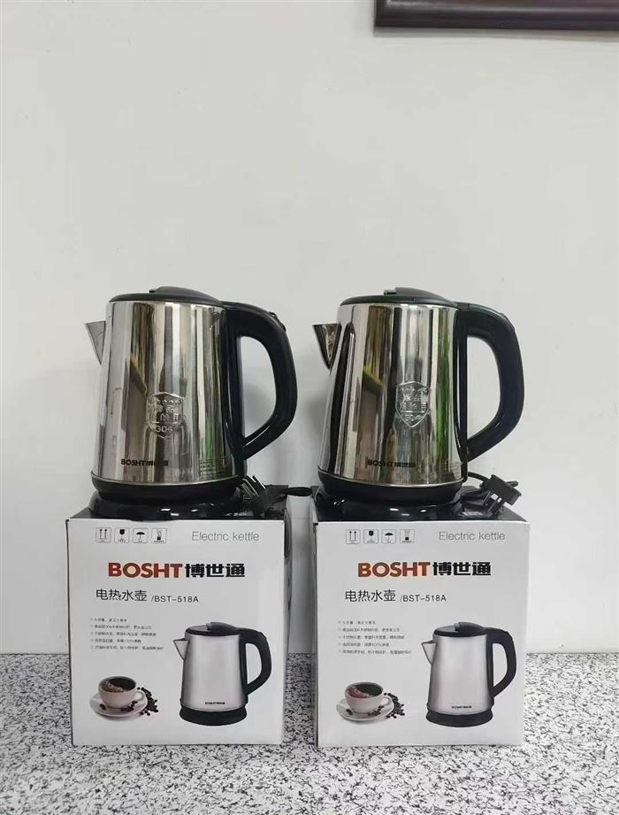 品牌博世通电水壶2000个,国标,1.8升,0.5厚不锈钢,双金温控,全铜线 超大内钢盖,独立包装,原箱原件。 (识别下方二维码联系卖家)