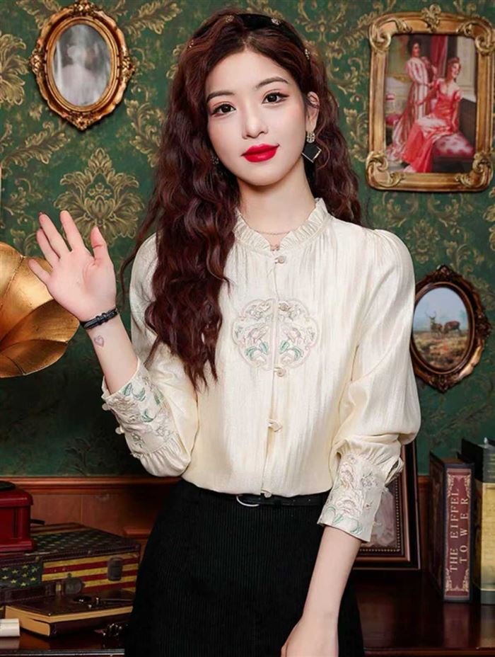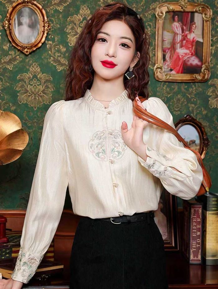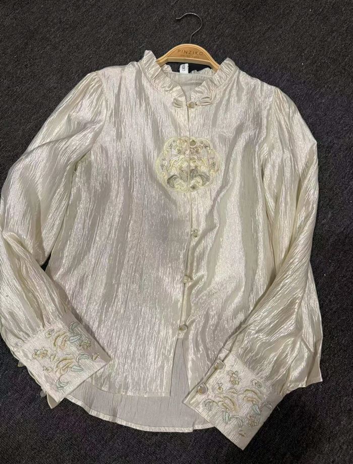 新中式国风真丝刺绣衬衫,袖口都是刺绣加盘扣,最后100件 S-L码[庆祝][庆祝][庆祝] (识别下方二维码联系卖家)