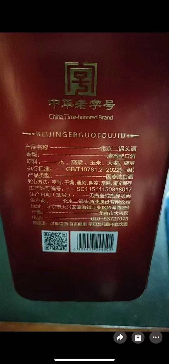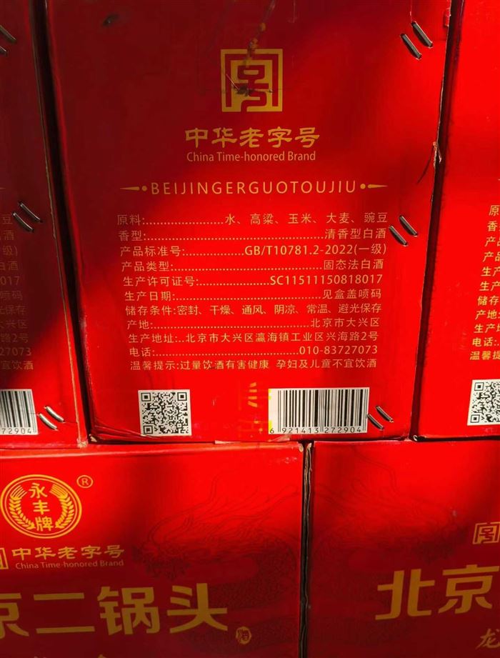 北京二锅头几百箱,永丰方瓶,24年,蓝色231箱,1箱12瓶,24年,红色52箱,1箱12瓶,23年,白色46箱,1箱12瓶 (识别下方二维码联系卖家)