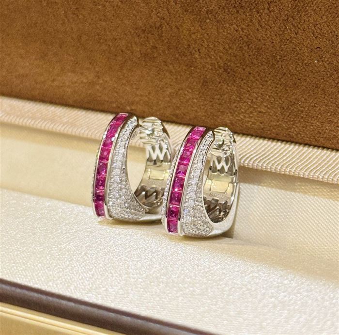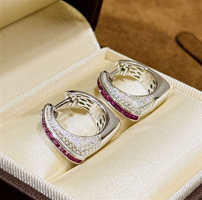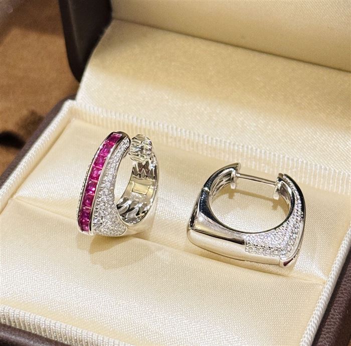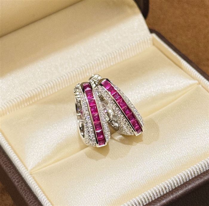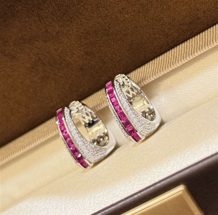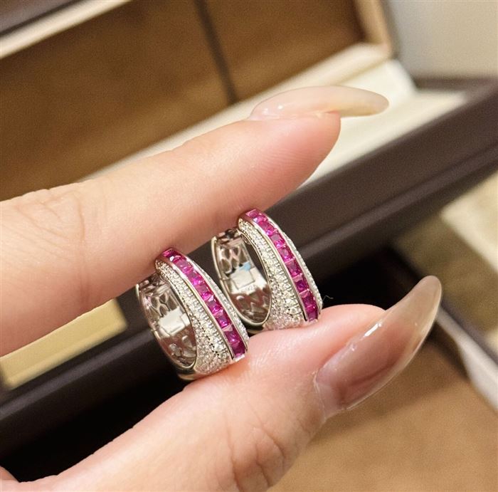 A6085 👑 大牌新款 玫红梯方钻 手提包👜 耳拍 高端大气cnc 抛光 进口925纯银微镶工艺 中间采用梯方钻微镶 太爱啦 电镀厚金 5A锆石 纯银耳拍 (识别下方二维码联系卖家)